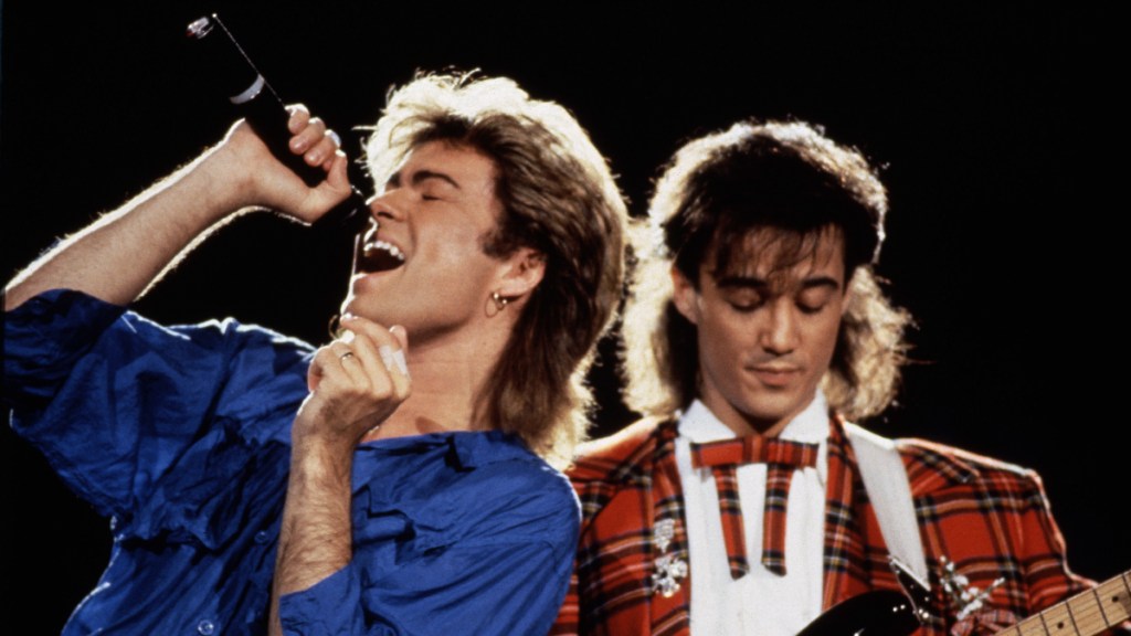 George Michael and Andrew Ridgeley of WHAM! performing in Japan, January 1985. (Photo by Michael Putland/Getty Images)