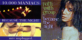 Bruce Springsteen's "Because The Night" is the biggest hit for both Patti Smith and 10,000 Maniacs. For Smith, it was an anomaly, as her songs were aimed at a narrow audience. In the case of 10,000 Maniacs, it marked the emergence of Natalie Merchant as a hitmaker; the song was her last single with the group, and her subsequent solo album Tigerlily got her on the charts with "Carnival" and "Wonder."