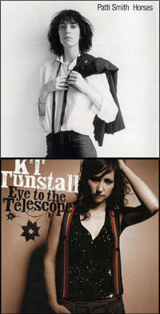 The album cover for K.T. Tunstall's Eye To The Telescope was inspired by the cover of Patti Smith's 1975 album Horses.