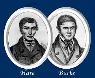 Burke and Hare, the notorious bodysnatchers, and perpetrators of the West Port Murders. Their victims were smothered and delivered to the anatomist Dr Knox, who turned a blind eye to their murdererous activities in the name of science.