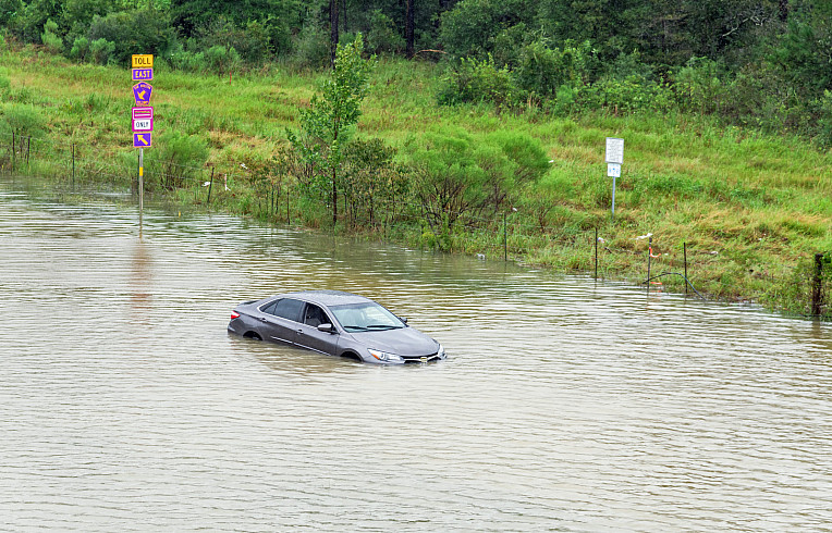 A car overwhelmed by flood waters in East Houston, Texas