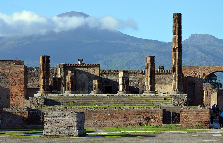 The ruins of Pompeii with Mount Vesuvius in the background